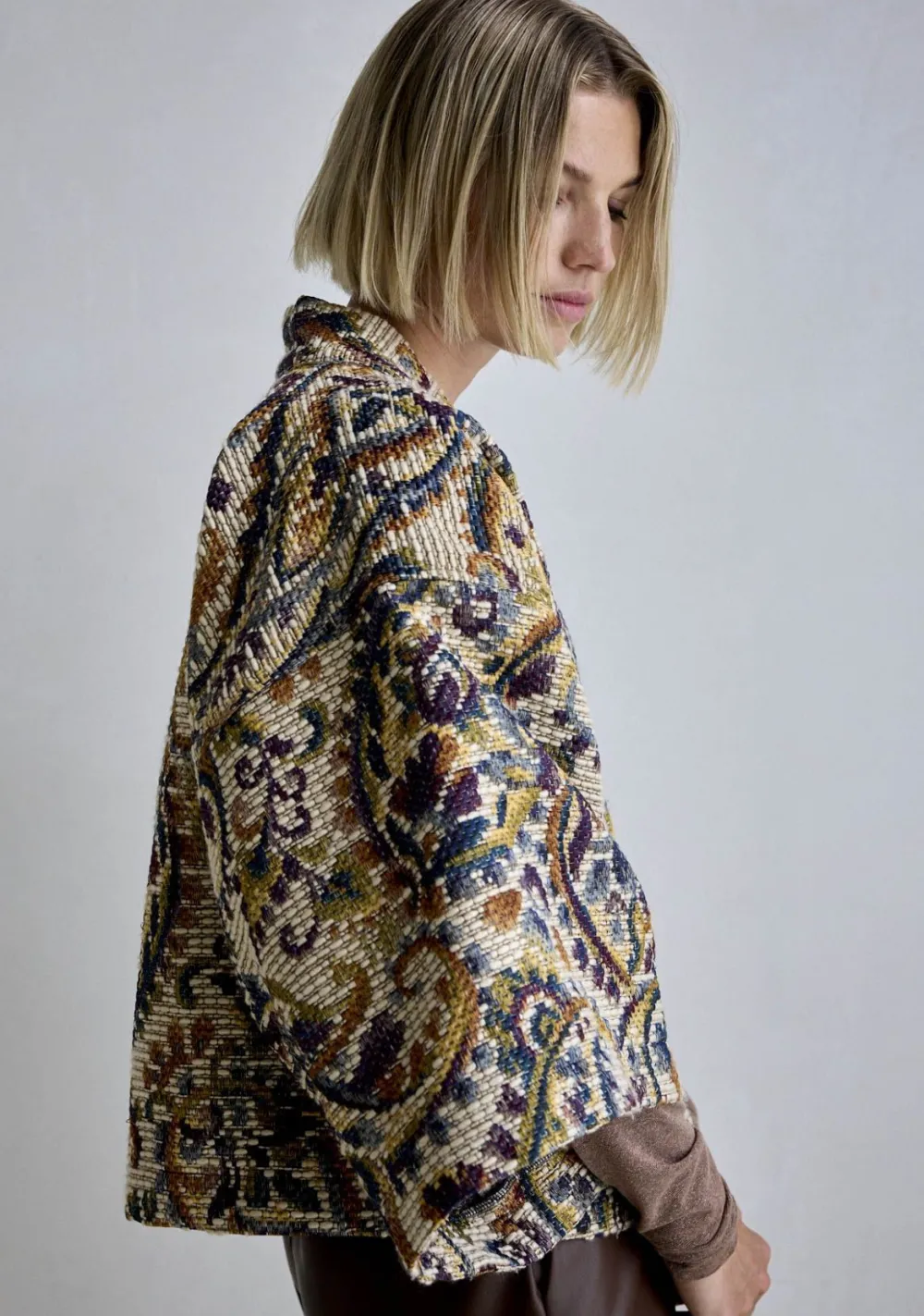 – Het model is 1.76m lang en draagt maat S