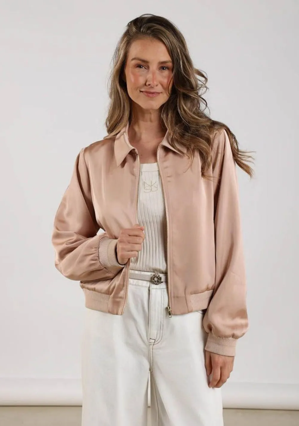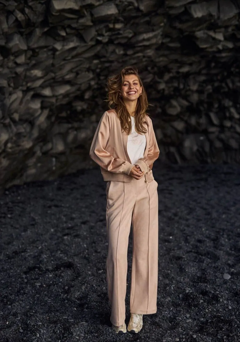 – Het model is 1.76m lang en draagt maat S