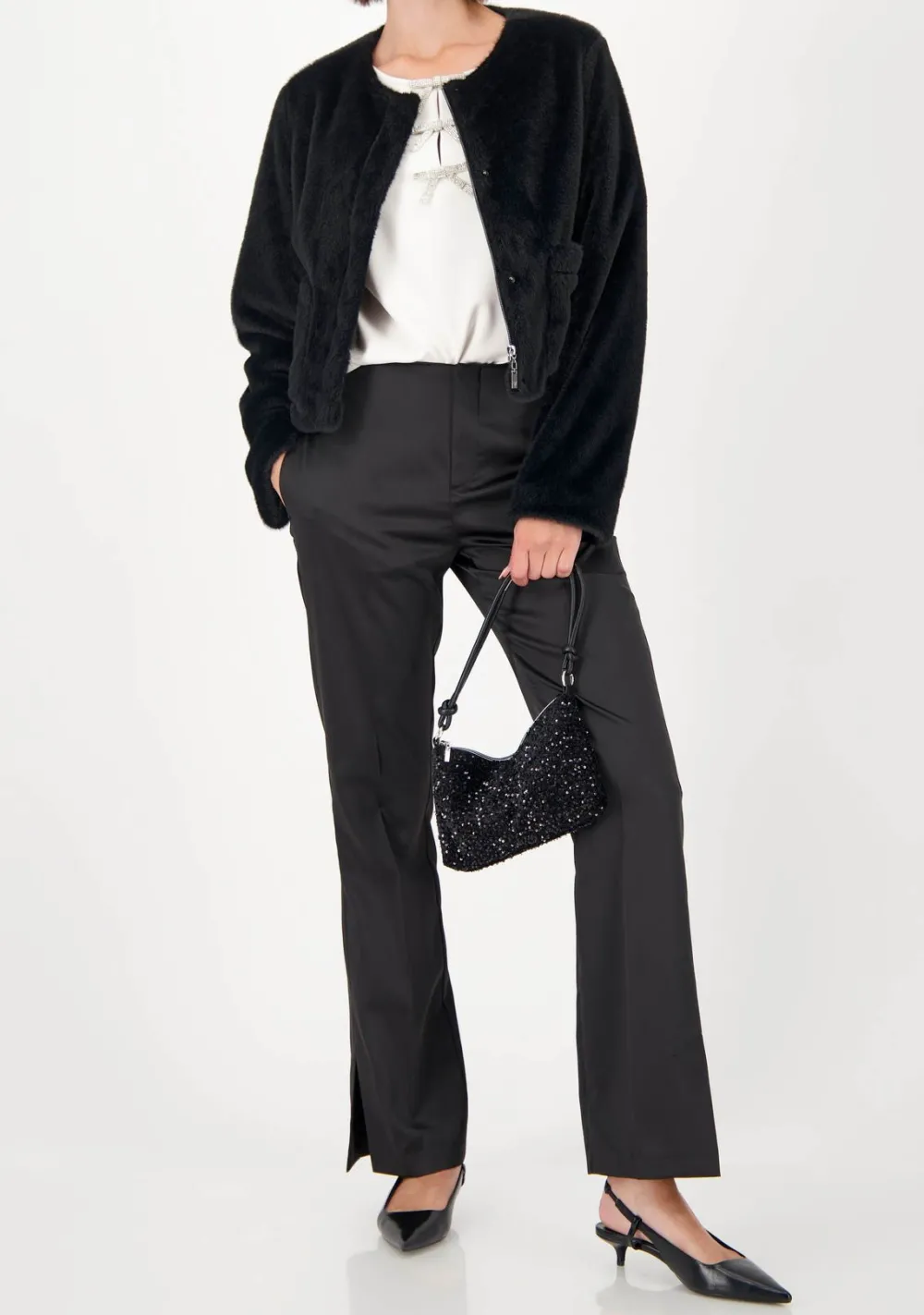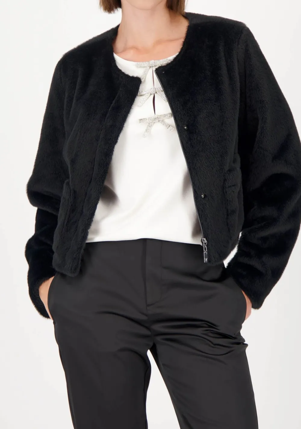 – Het model is 1.76m lang en draagt maat 38