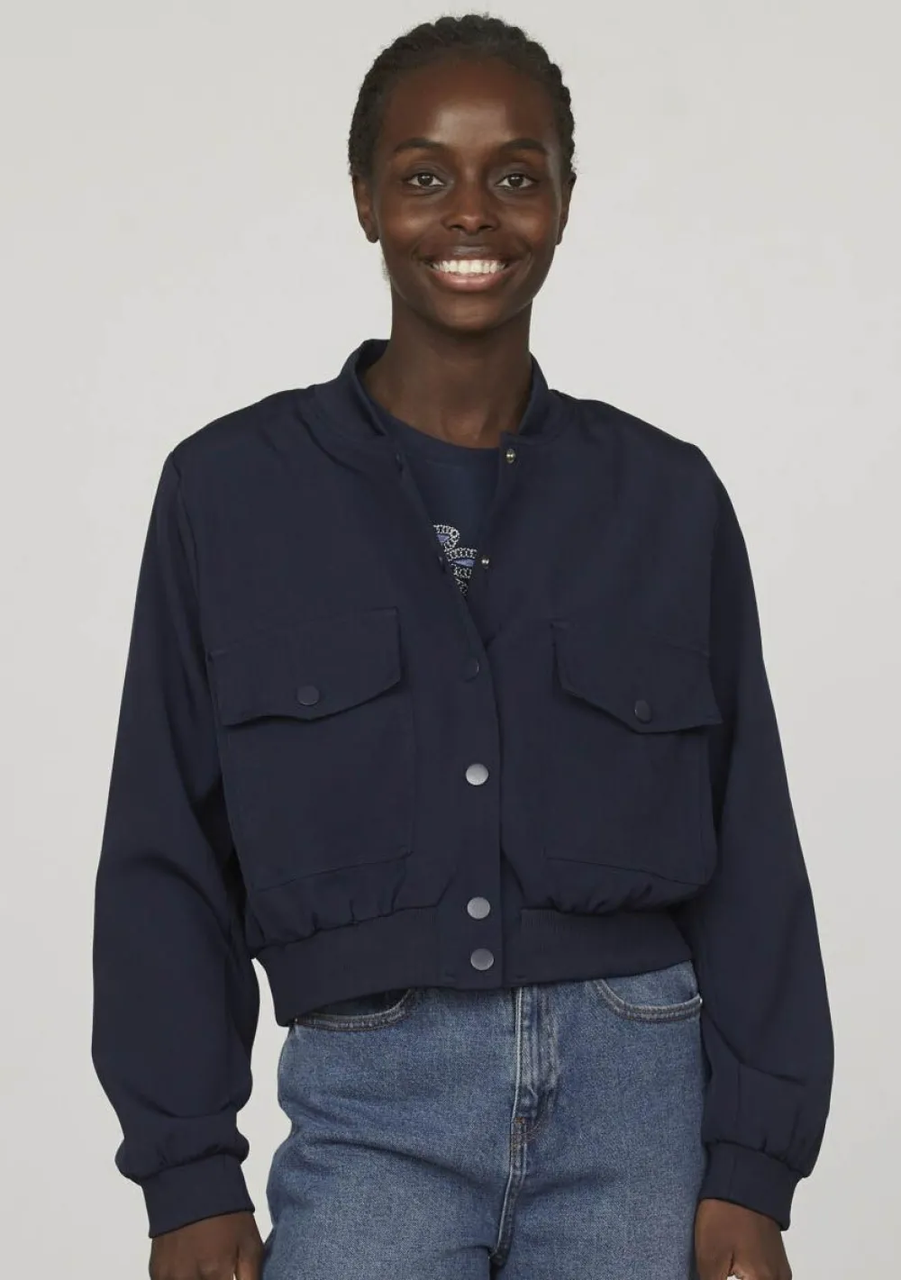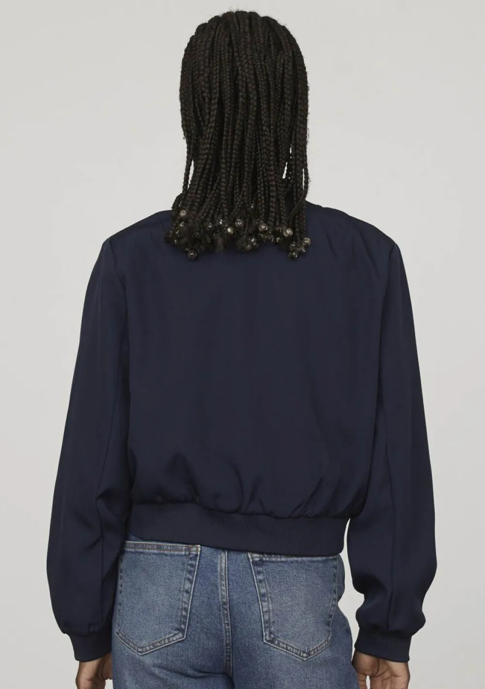 – Het model is 1.76m lang en draagt maat S