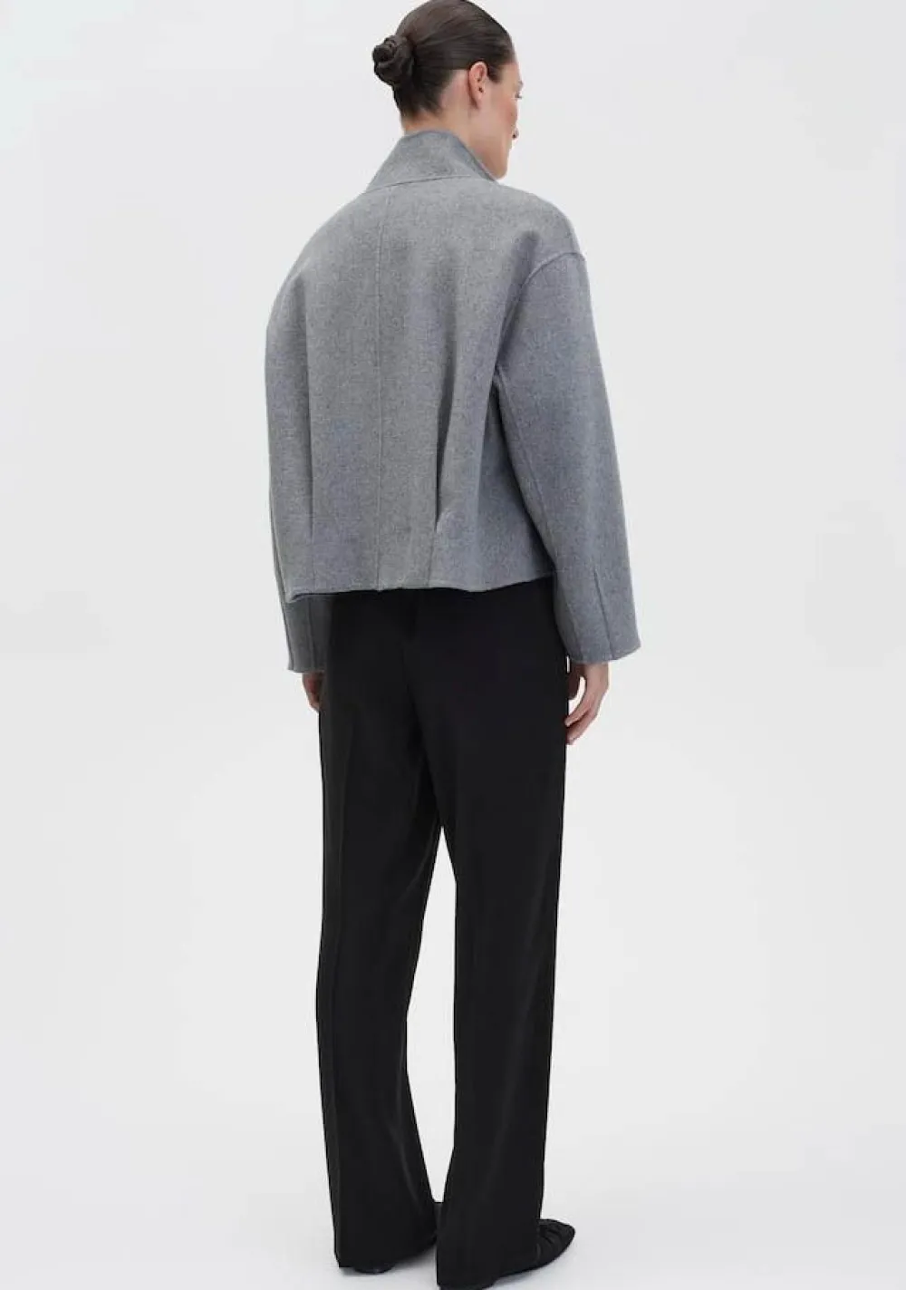 – Het model is 1.76m lang en draagt maat 36