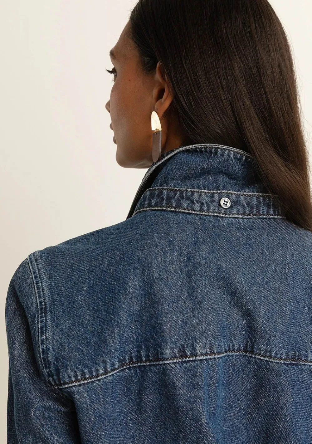 – Het model is 1.76m lang en draagt maat 36