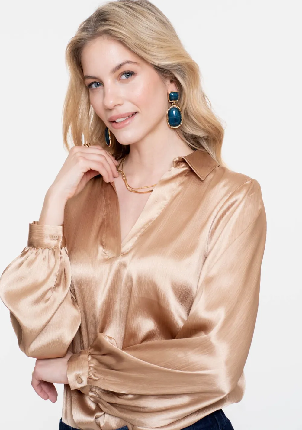 | Halslijn | Blouse kraag, V-hals |