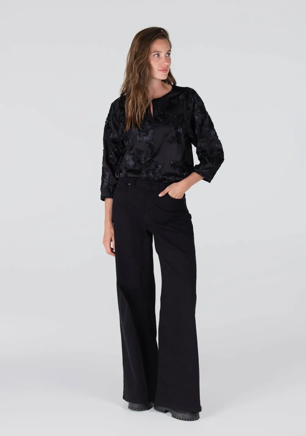 – Het model is 1.78m lang en draagt maat S