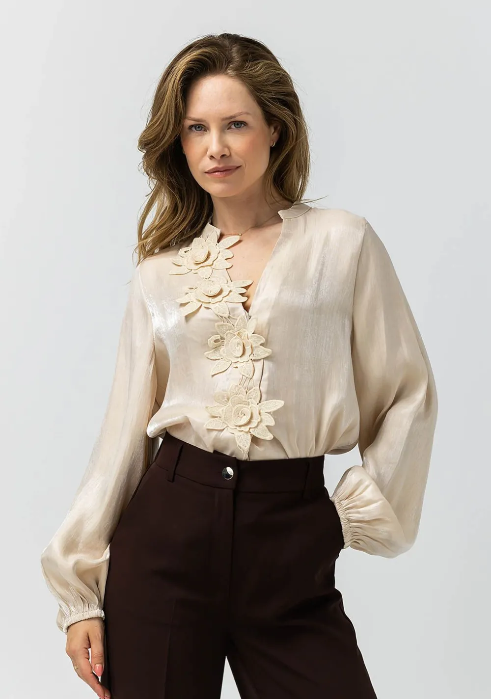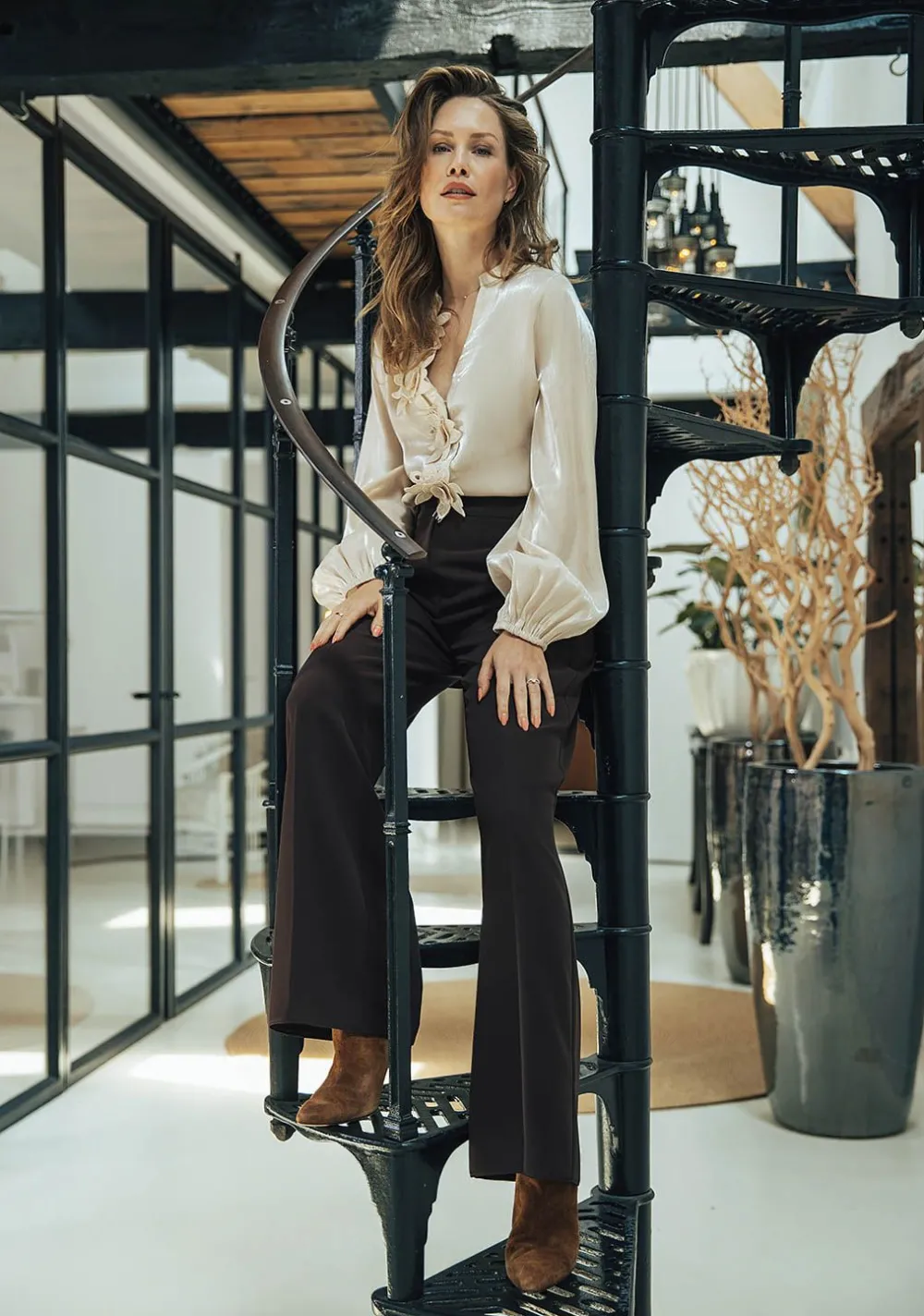 – Het model is 1.76m lang en draagt maat 36