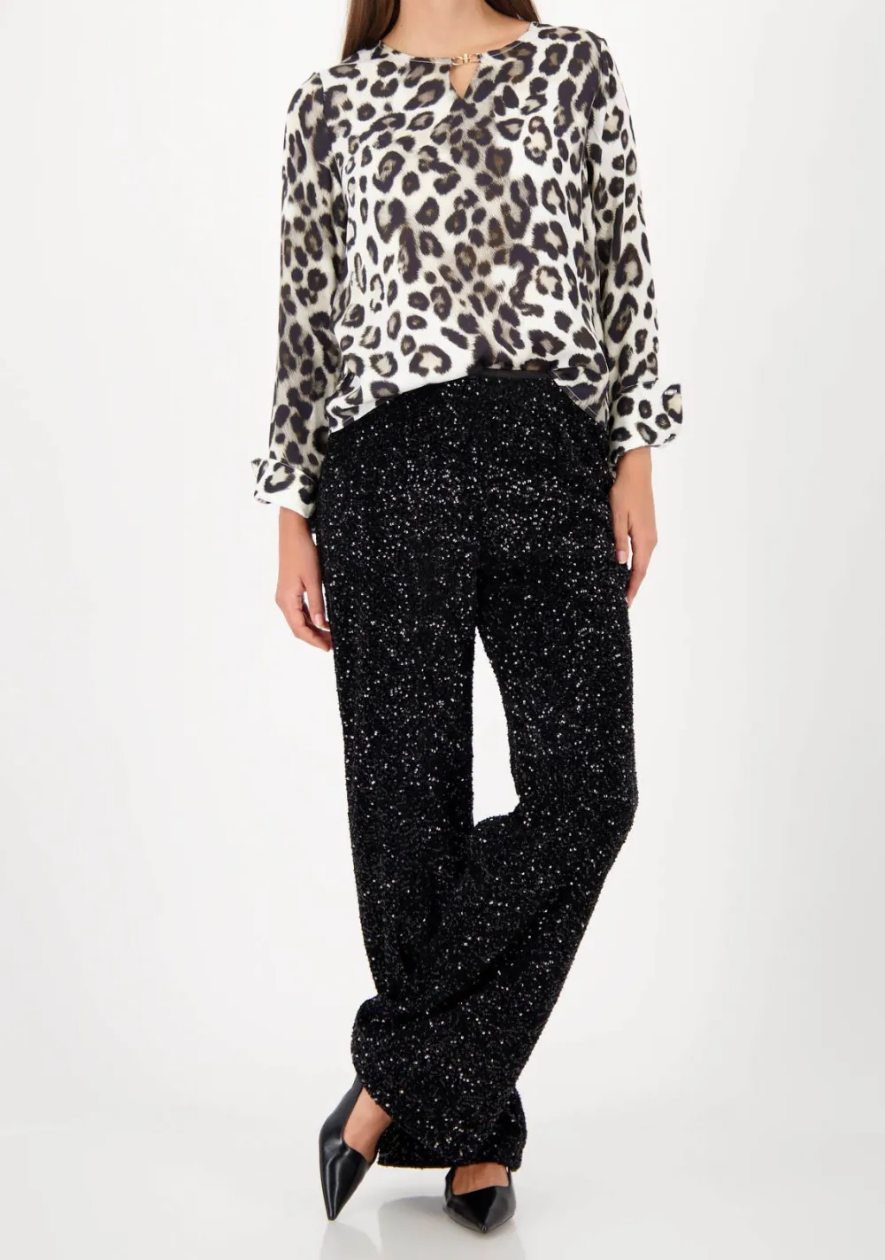 – Het model is 1.76m lang en draagt maat 38