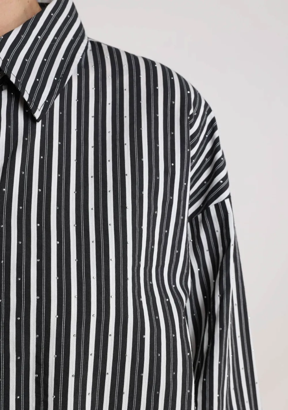 – Het model is 1.76m lang en draagt maat S