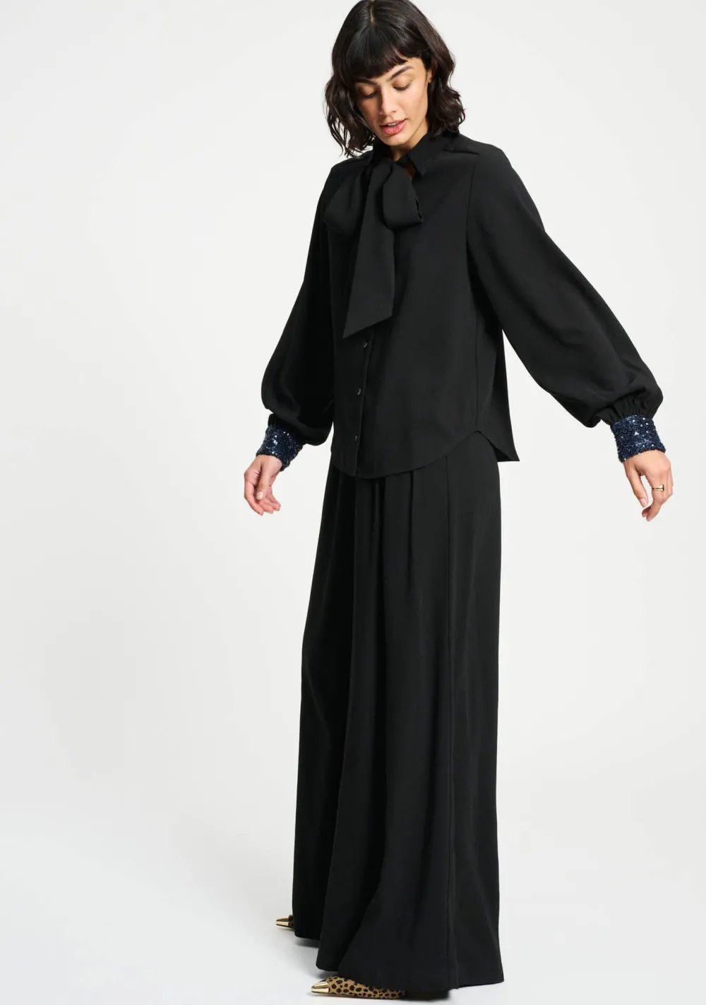 – Het model is 1.76m lang en draagt maat 36