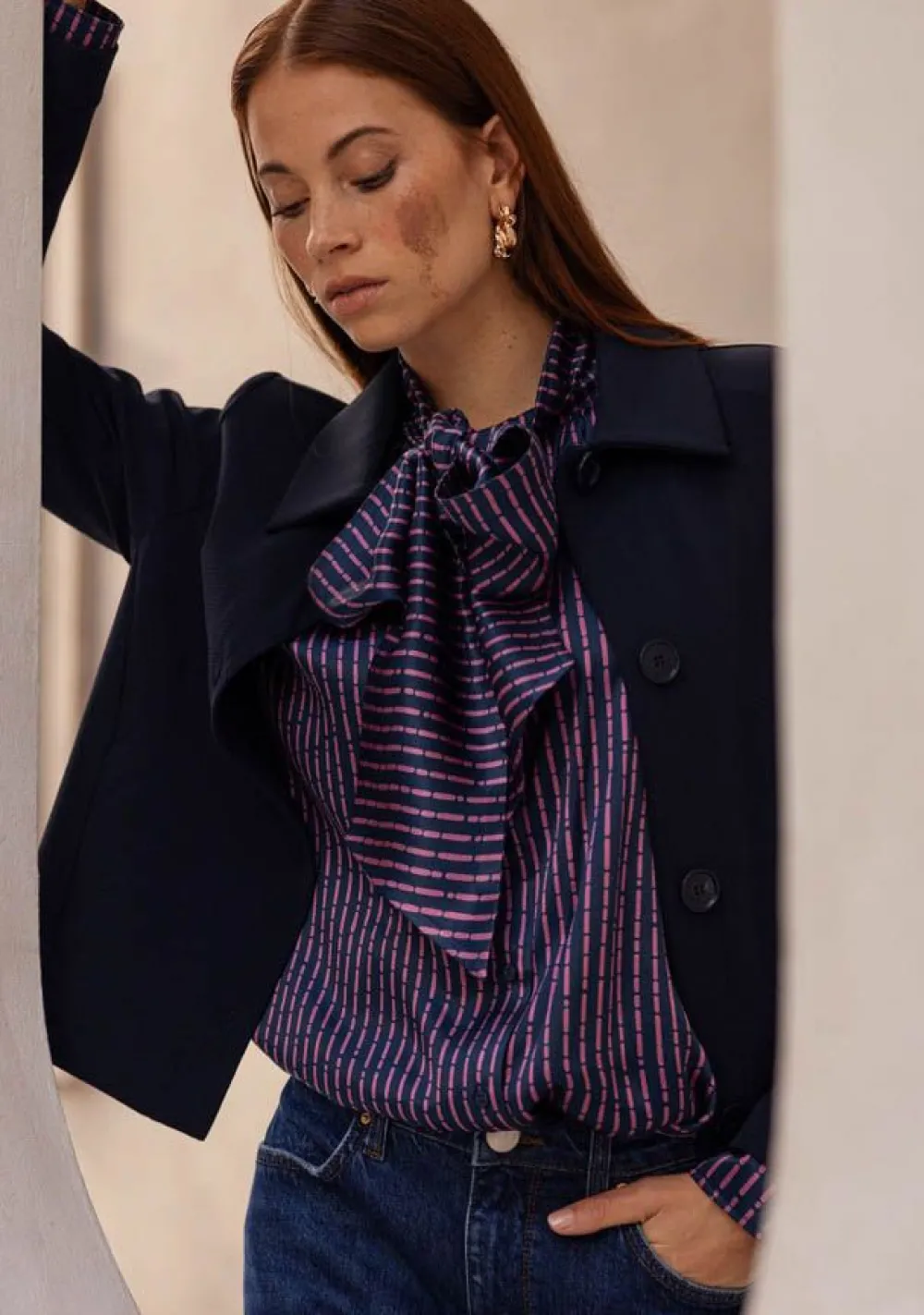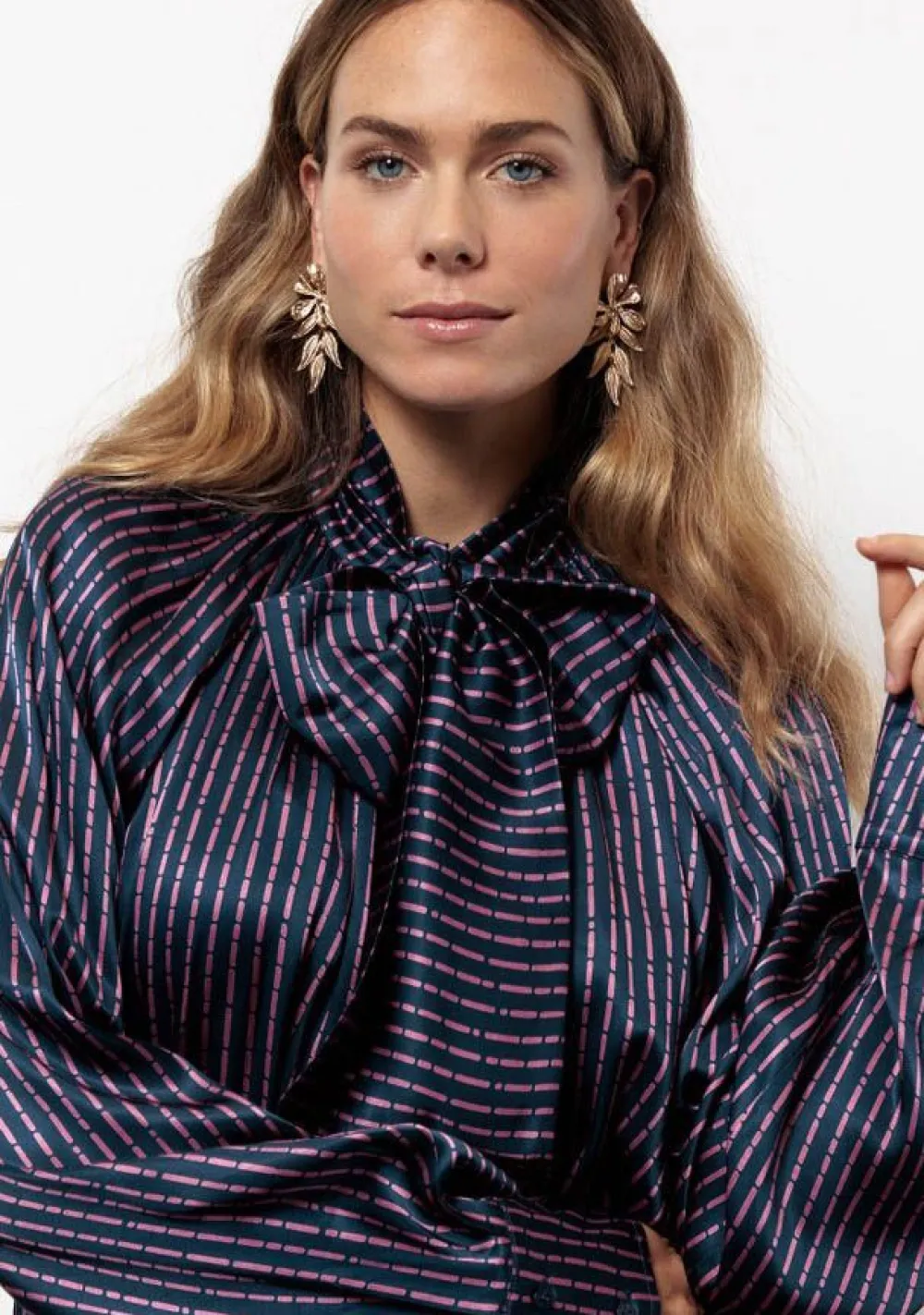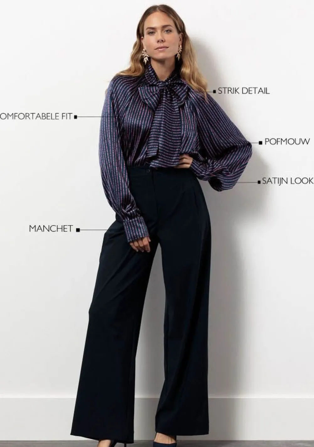 – Het model is 1.76m lang en draagt maat S