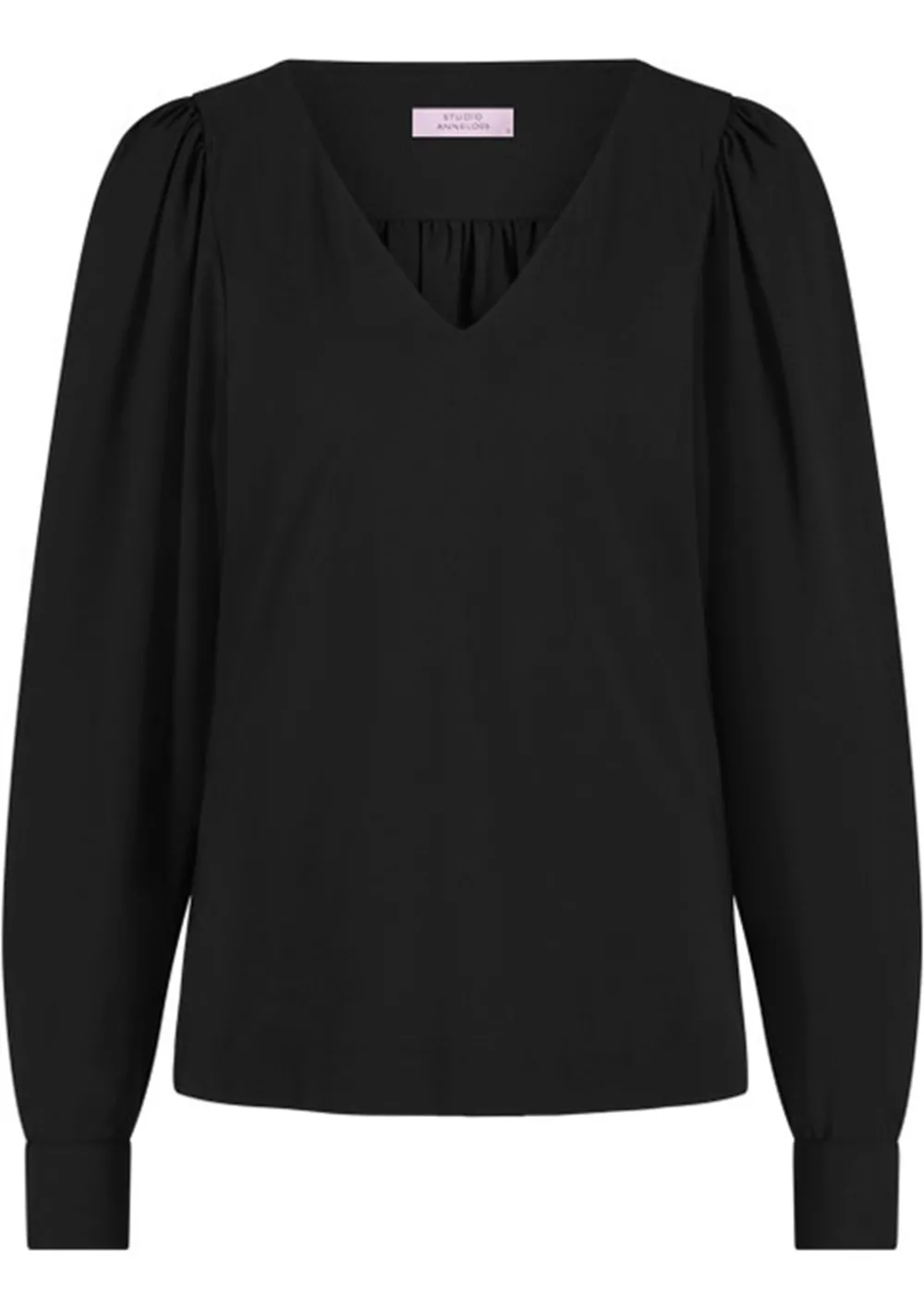 Het model op de foto is 1.79m lang en draagt maat S, wat laat zien hoe mooi de top aansluit. Het ontwerp is los genoeg voor comfort, maar flatterend genoeg om je figuur te benadrukken.