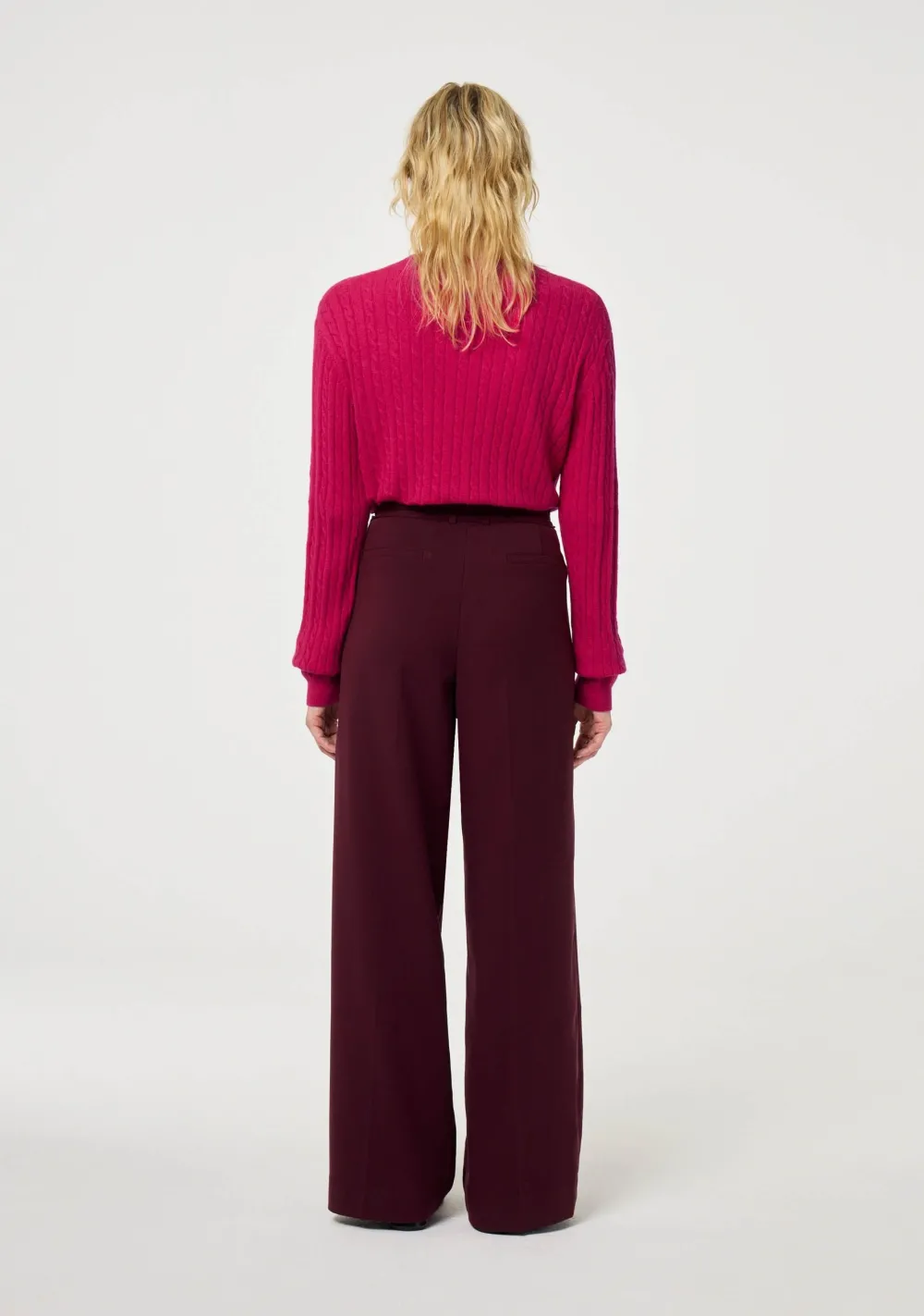 – Het model is 1.80m lang en draagt maat 36