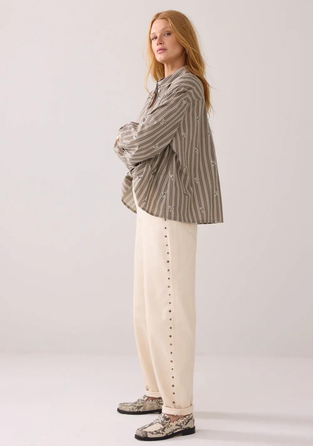 – Het model is 1.76m lang en draagt maat 36