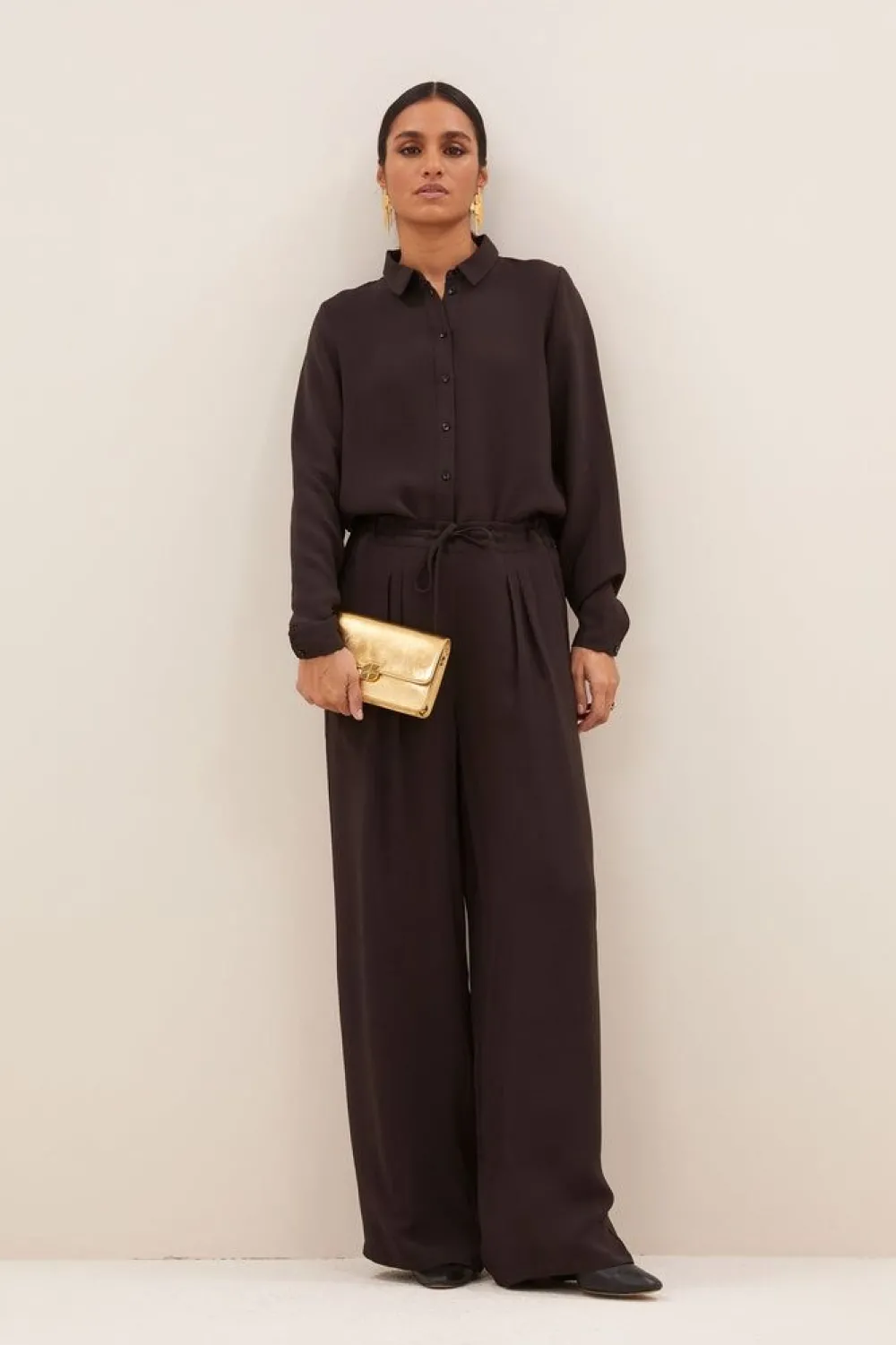 – Het model is 1.75m lang en draagt maat S