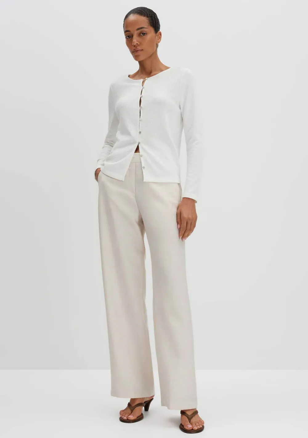 – Het model is 1.79m lang en draagt maat 36