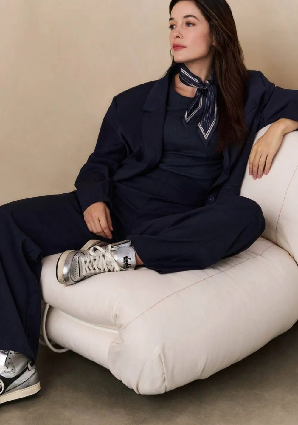 – Het model is 1.76m lang en draagt maat 36