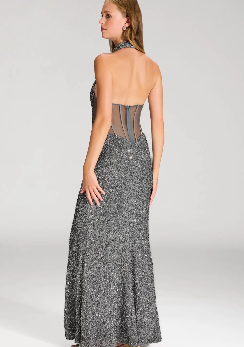 – Het model is 1.76m lang en draagt maat 36