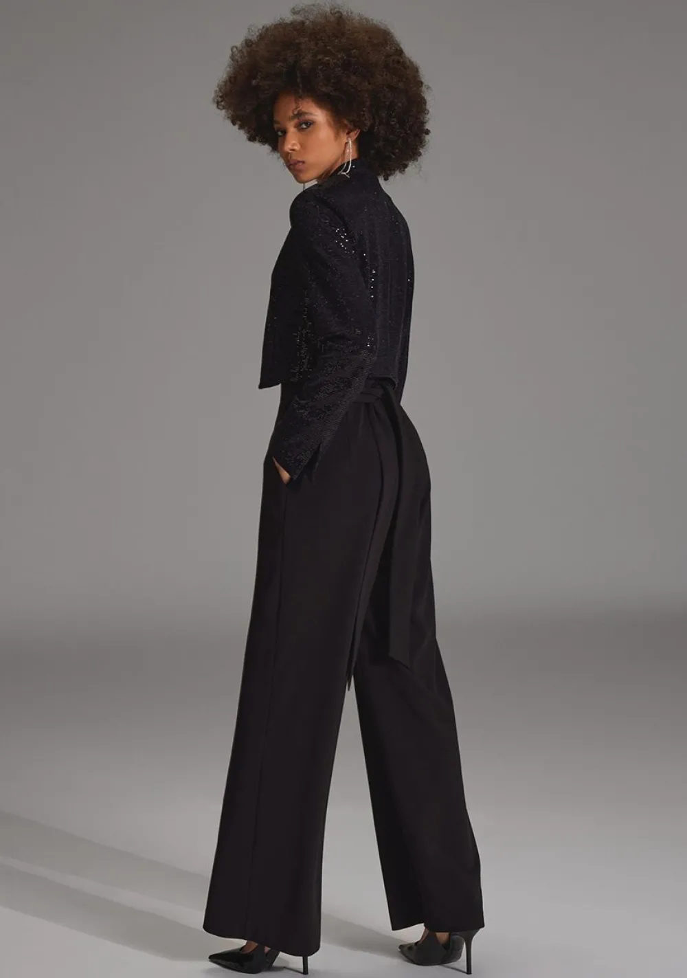 – Het model is 1.76m lang en draagt maat 36