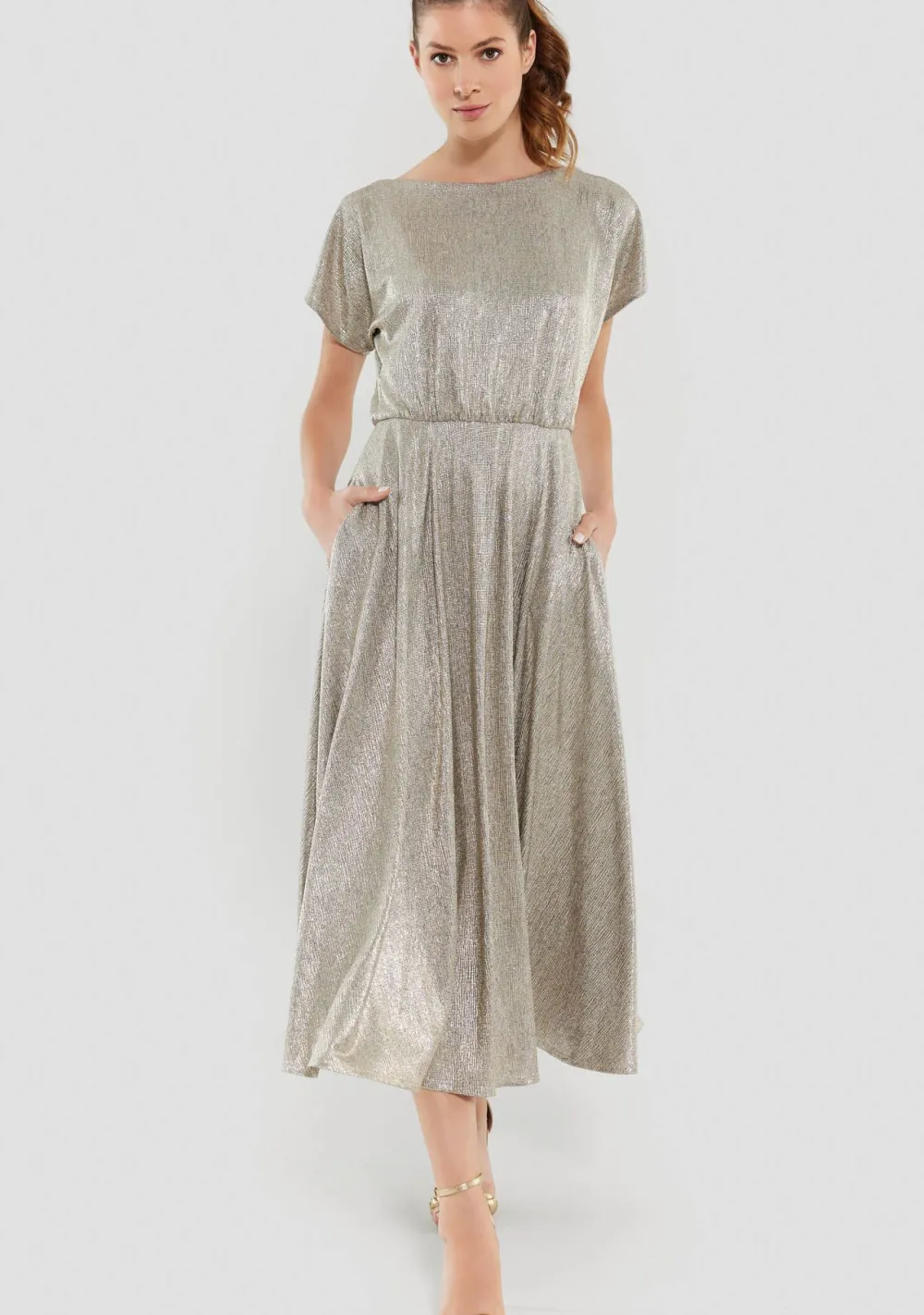 – Het model is 1.78m lang en draagt maat 36