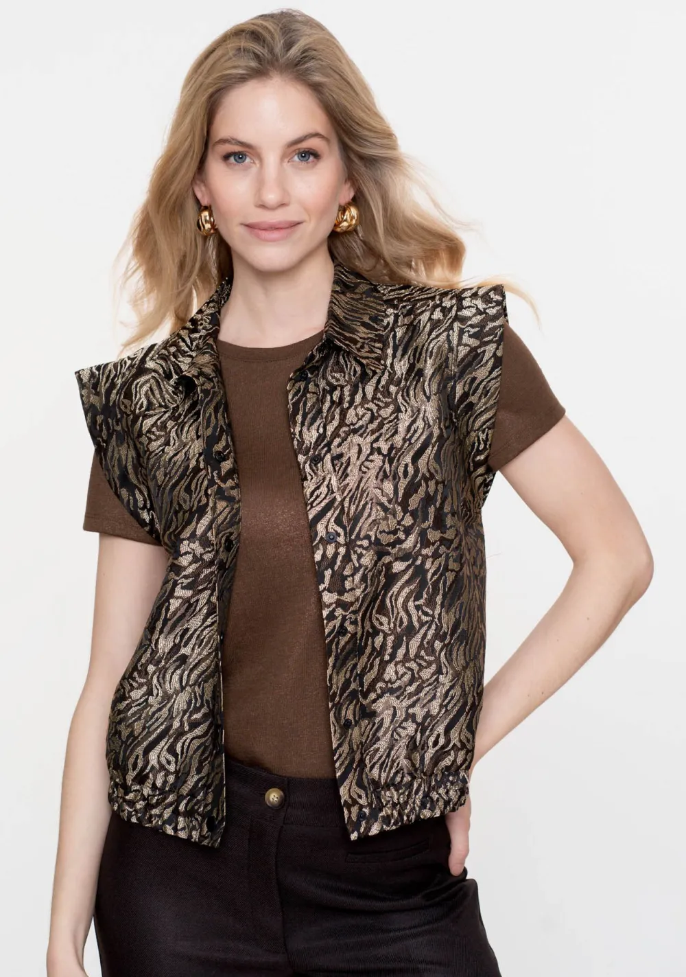 – Het model is 1.76m lang en draagt maat S