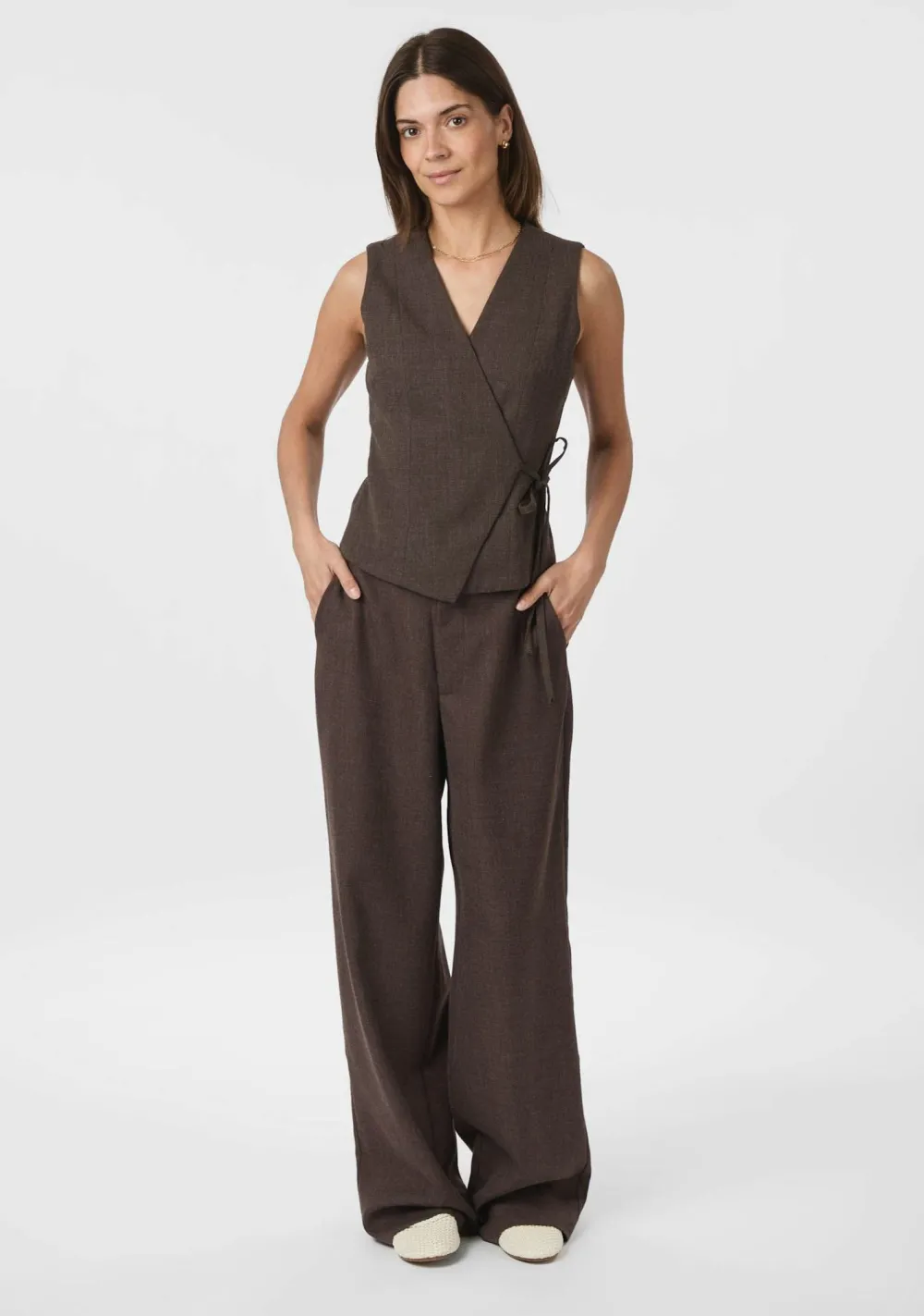 – Het model is 1.76m lang en draagt maat 36