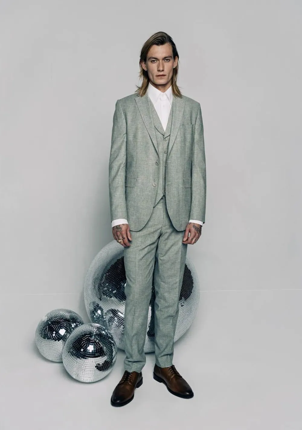 | Stofsamenstelling | 43% Katoen / 26% Scheerwol / 18% Viscose / 11% Linnen / 2% Elastaan / 60% Voering acetaat / 40% Voering Polyester |