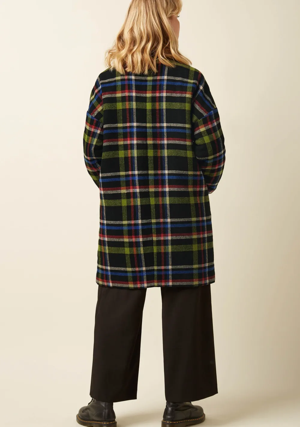 – Het model is 1.71m lang en draagt maat 36