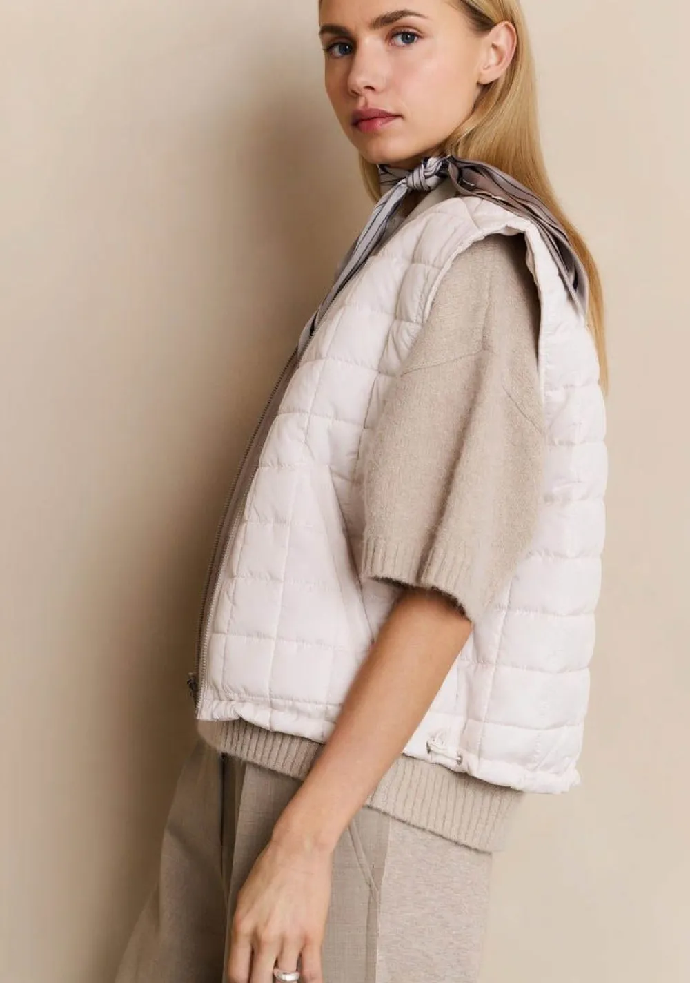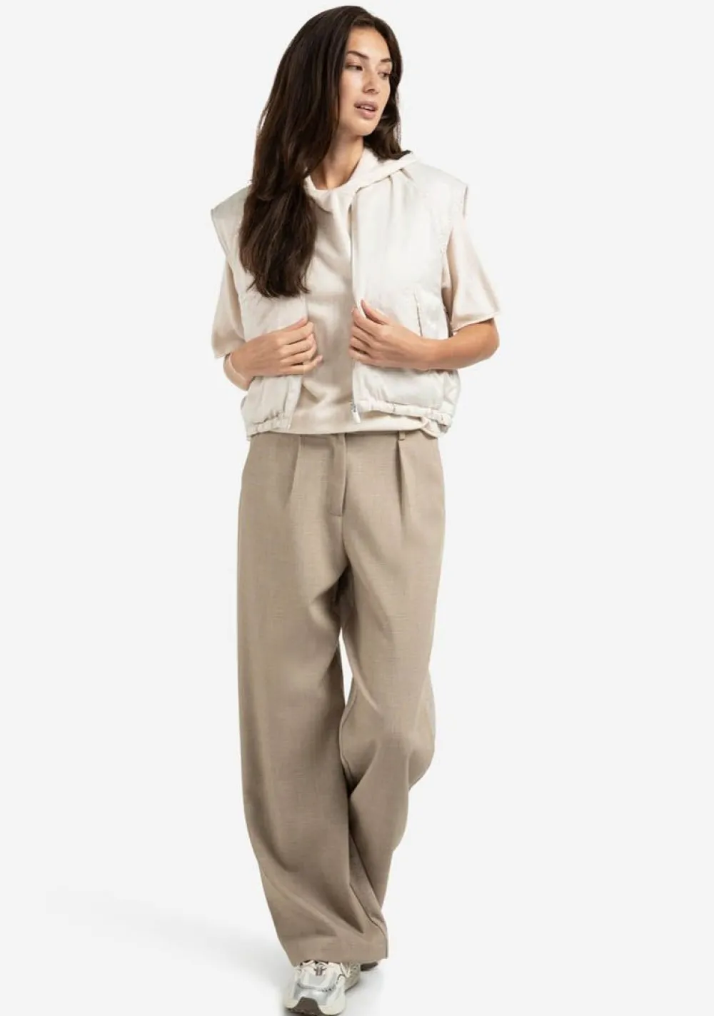 – Het model is 1.76m lang en draagt maat 36