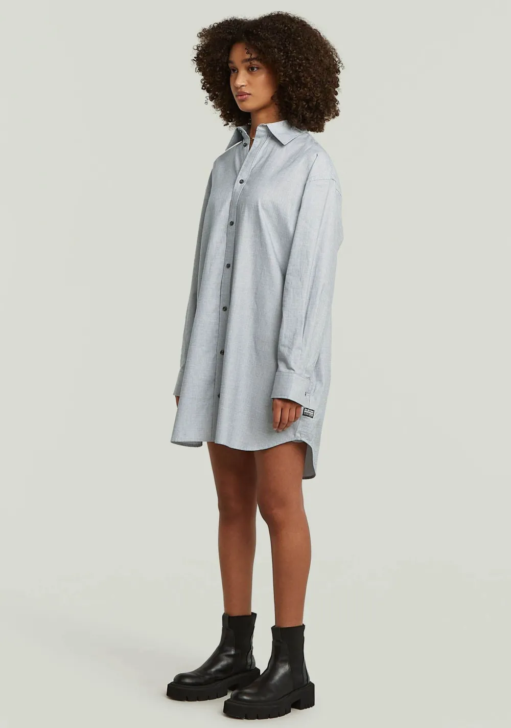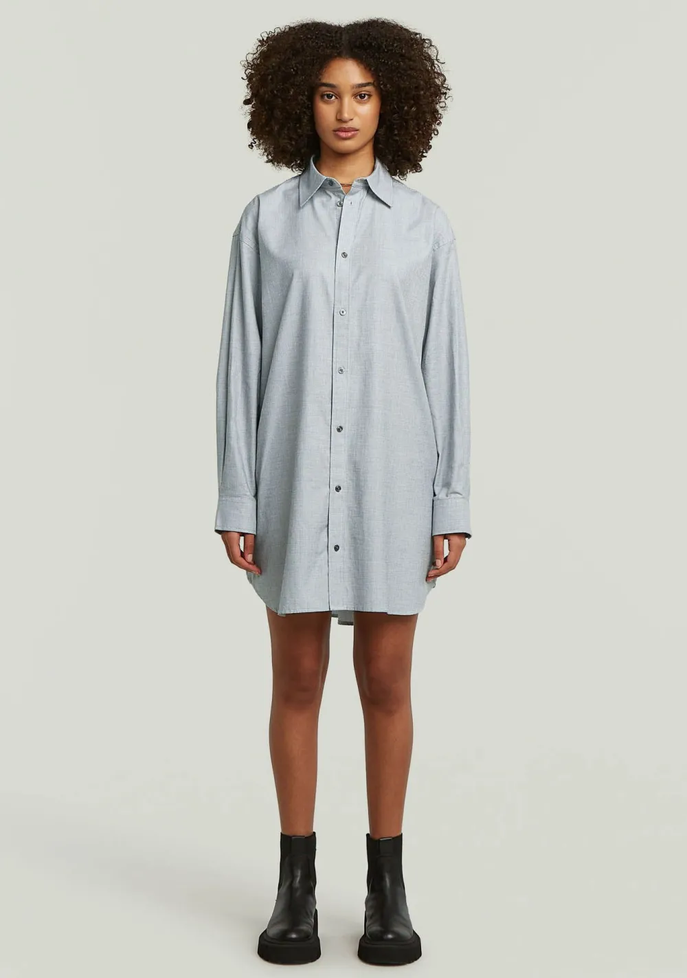 – Het model is 1.77m lang en draagt maat S