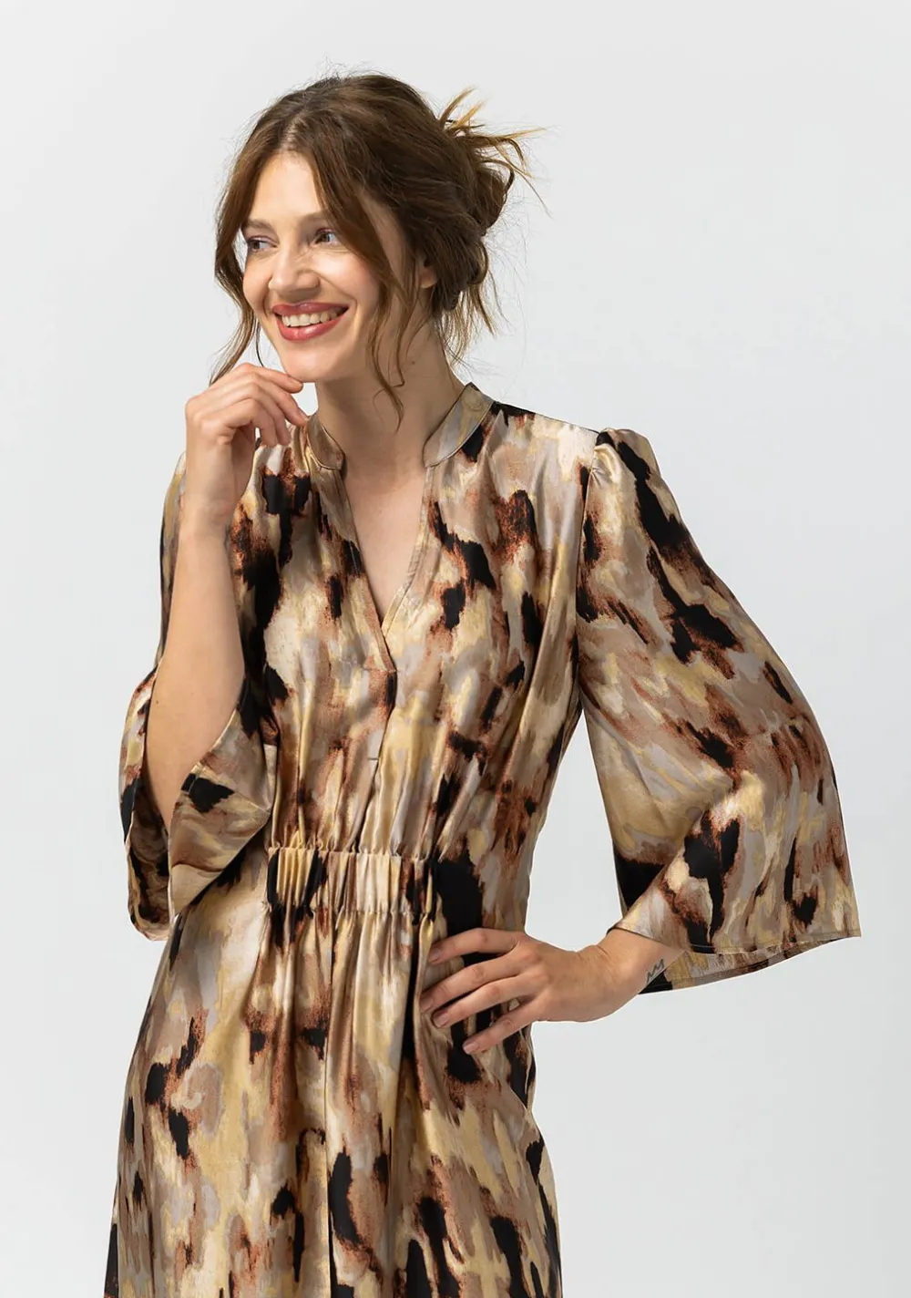 – Het model is 1.76m lang en draagt maat 36