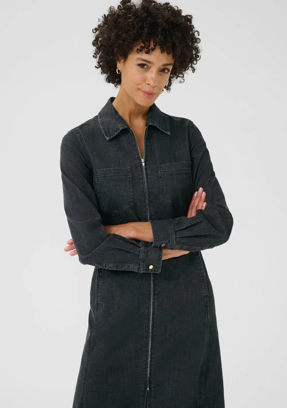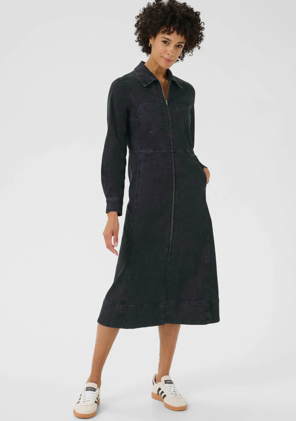 – Het model is 1.76m lang en draagt maat 36