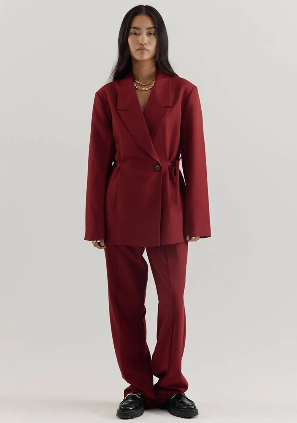 – Het model is 1.74m lang en draagt maat XS