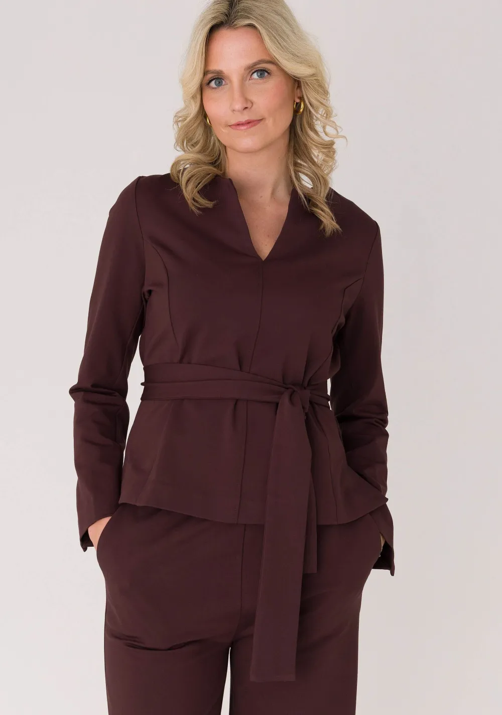 – Het model is 1.76m lang en draagt maat S