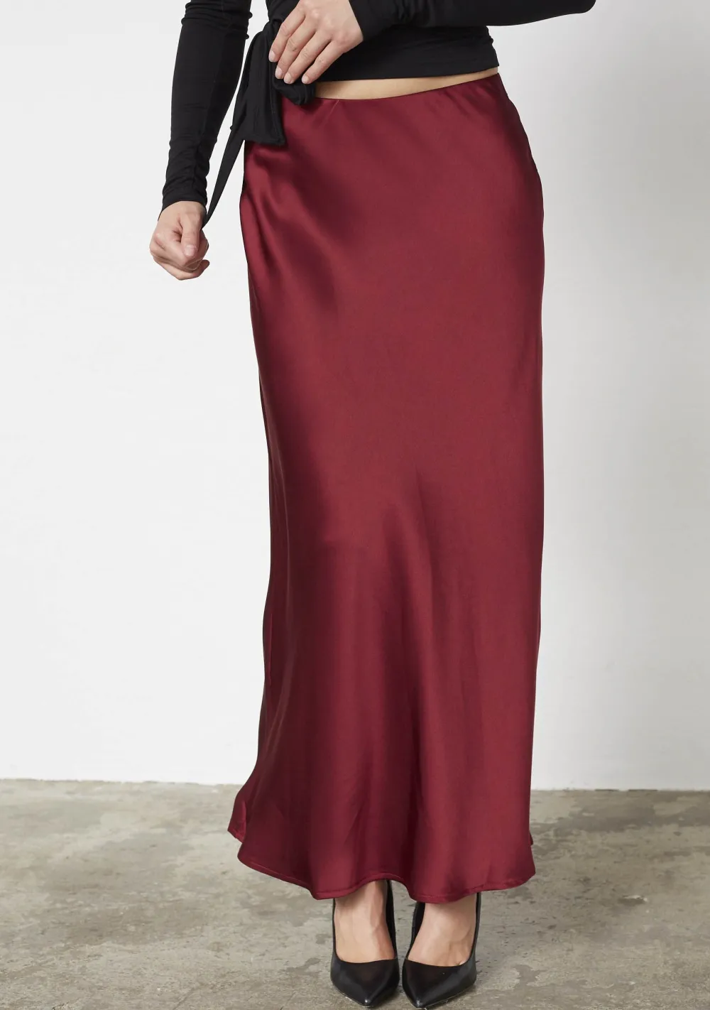 – Het model is 1.76m lang en draagt maat S