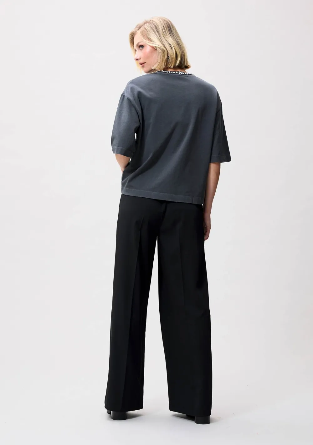 – Het model is 1.76m lang en draagt maat 36