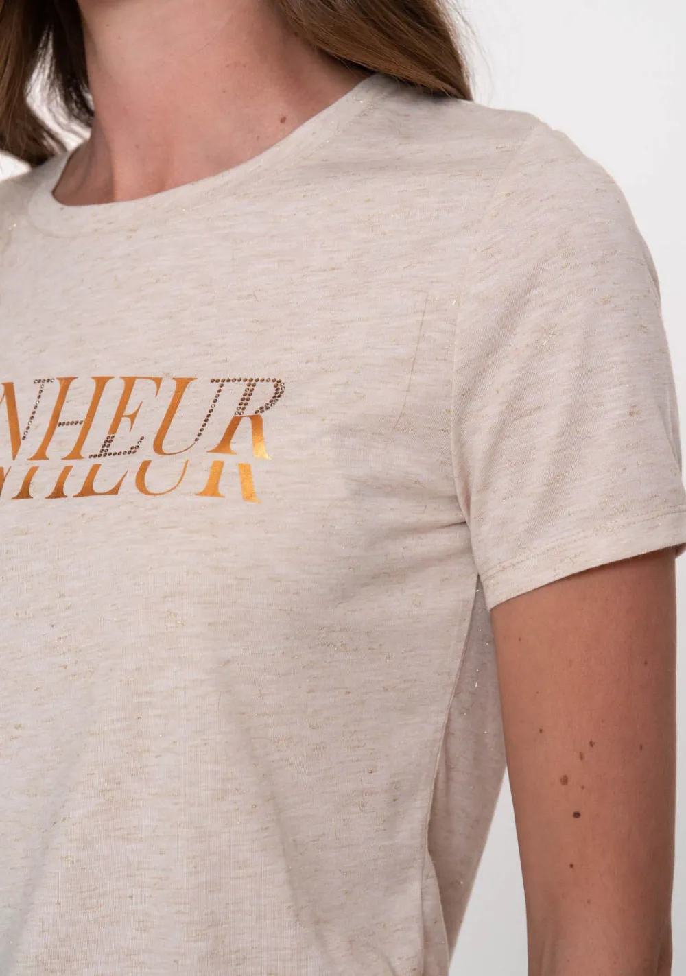 – Het model is 1.76m lang en draagt maat S