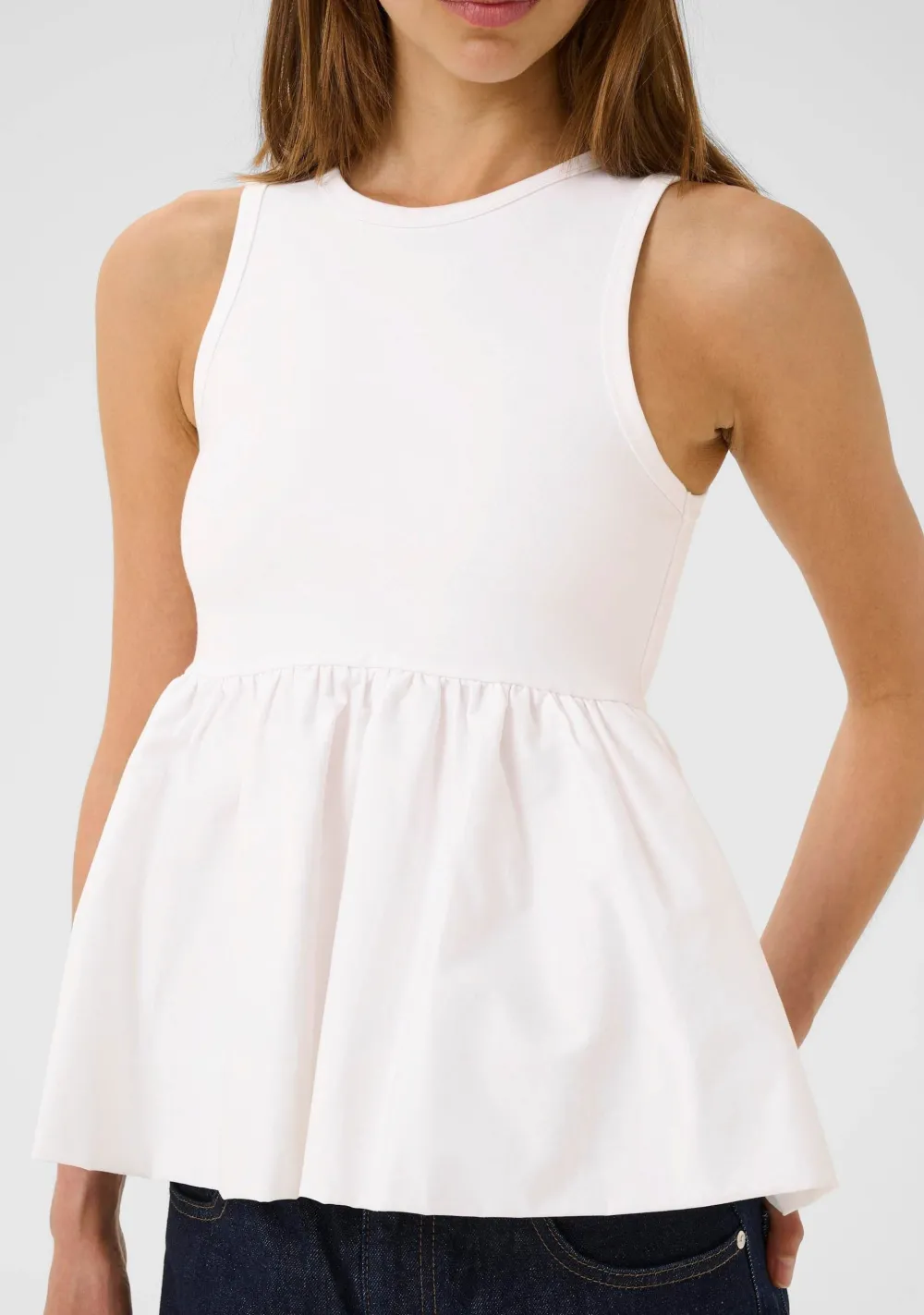 – Het model is 1.76m lang en draagt maat XS