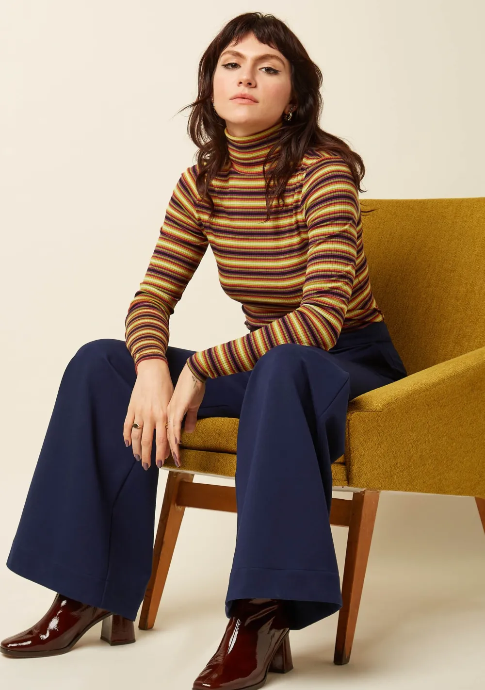 – Het model is 1.65m lang en draagt maat S