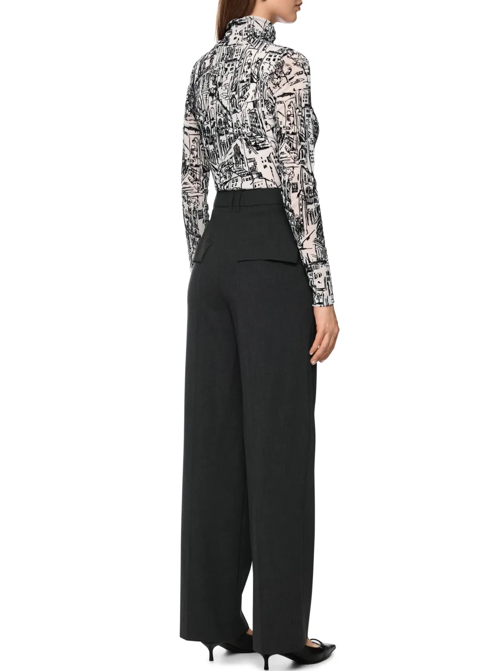 – Het model is 1.76m lang en draagt maat 36