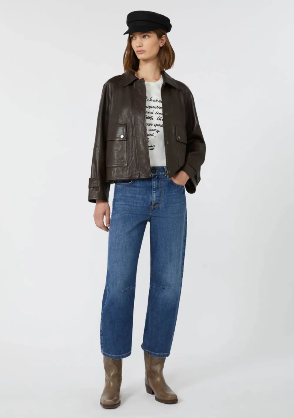 – Het model is 1.78m lang en draagt maat 36