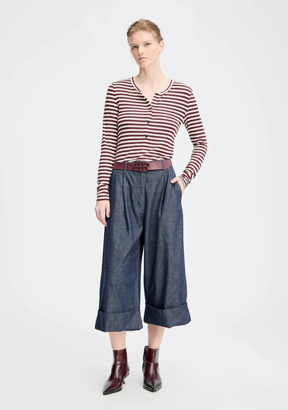 – Het model is 1.75m lang en draagt maat 36