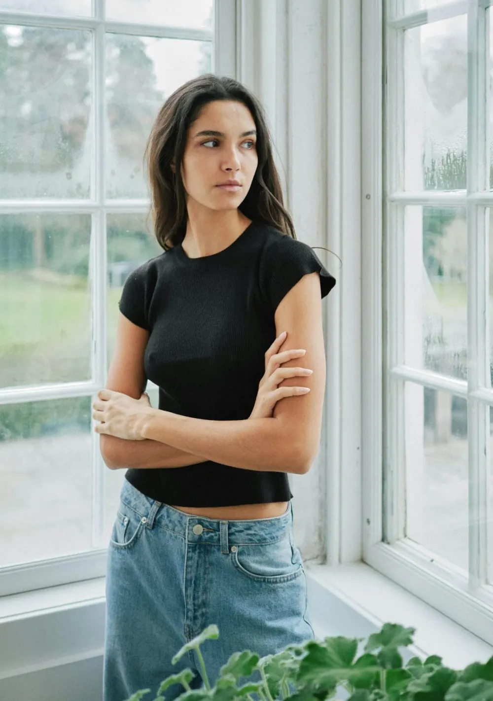 – Het model is 1.76m lang en draagt maat 36