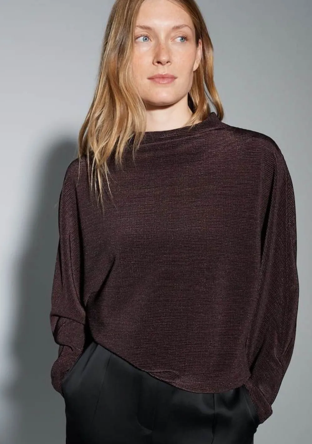 – Het model is 1.74m lang en draagt maat 36