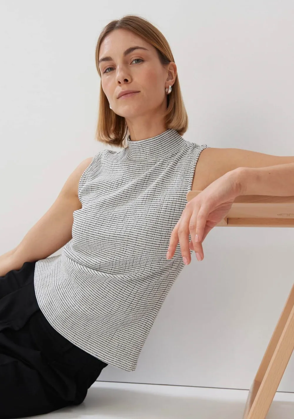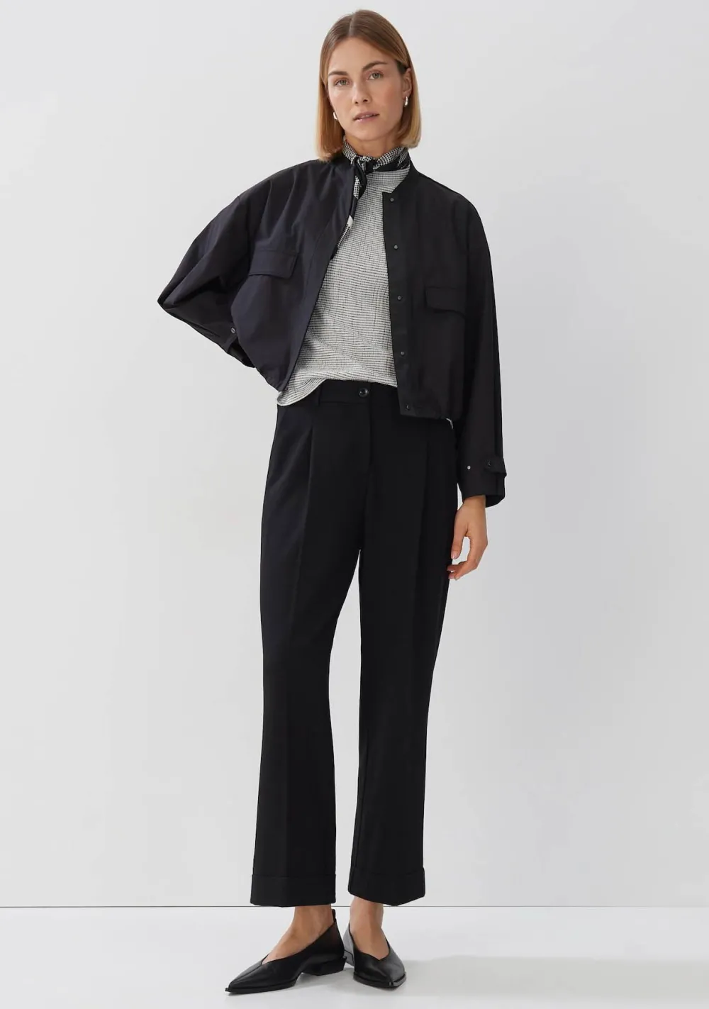 – Het model is 1.76m lang en draagt maat 36