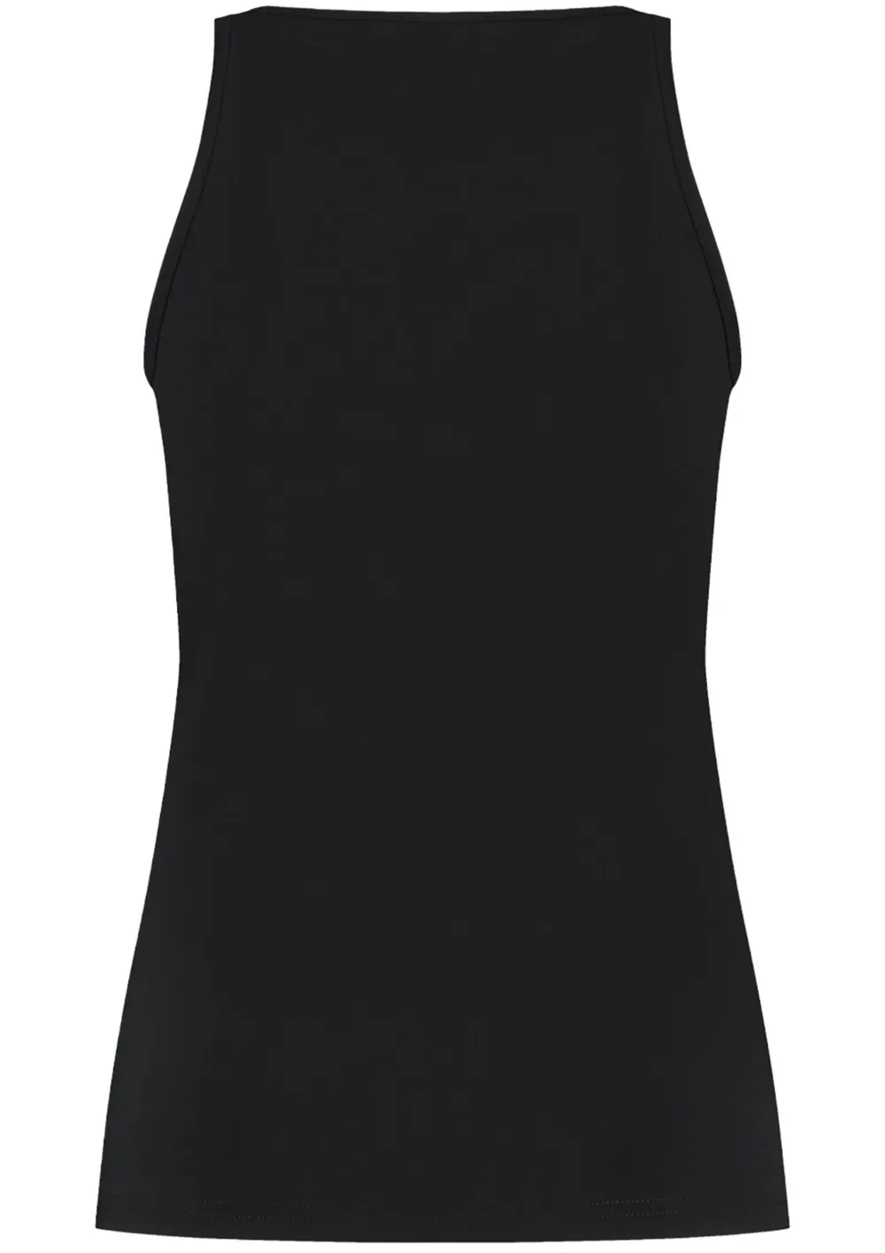 De Nova Top heeft een lengte van 62 cm vanaf de schouder, waardoor het precies lang genoeg is voor een elegante uitstraling. Het model op de foto is 1.73 m lang en draagt maat S, een goede indicatie van hoe deze top op verschillende lichaamstypen valt.