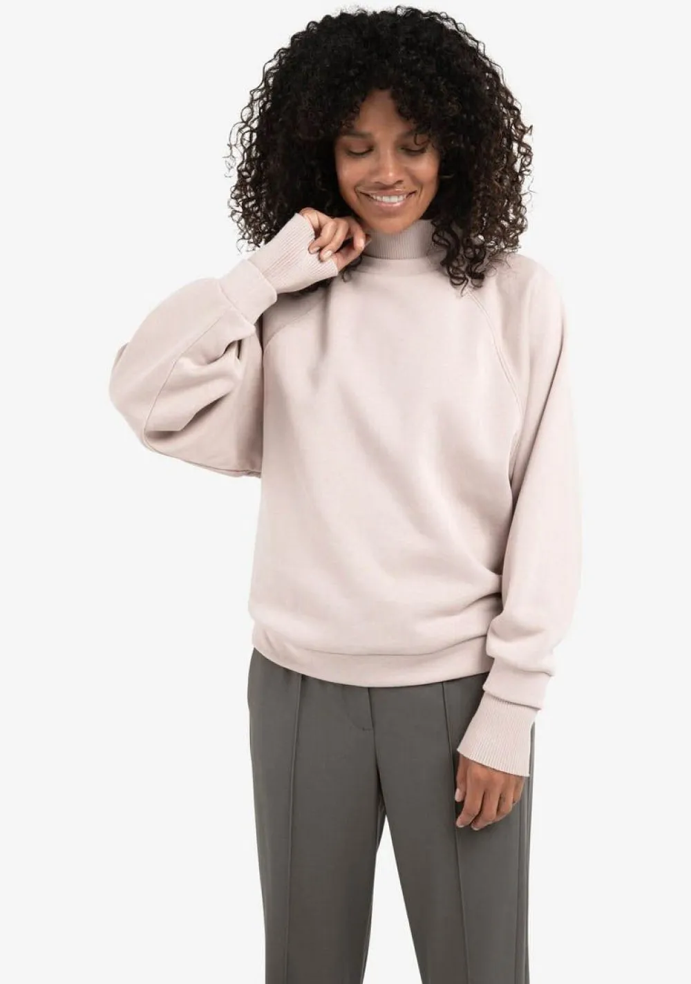 – Het model is 1.76m lang en draagt maat S