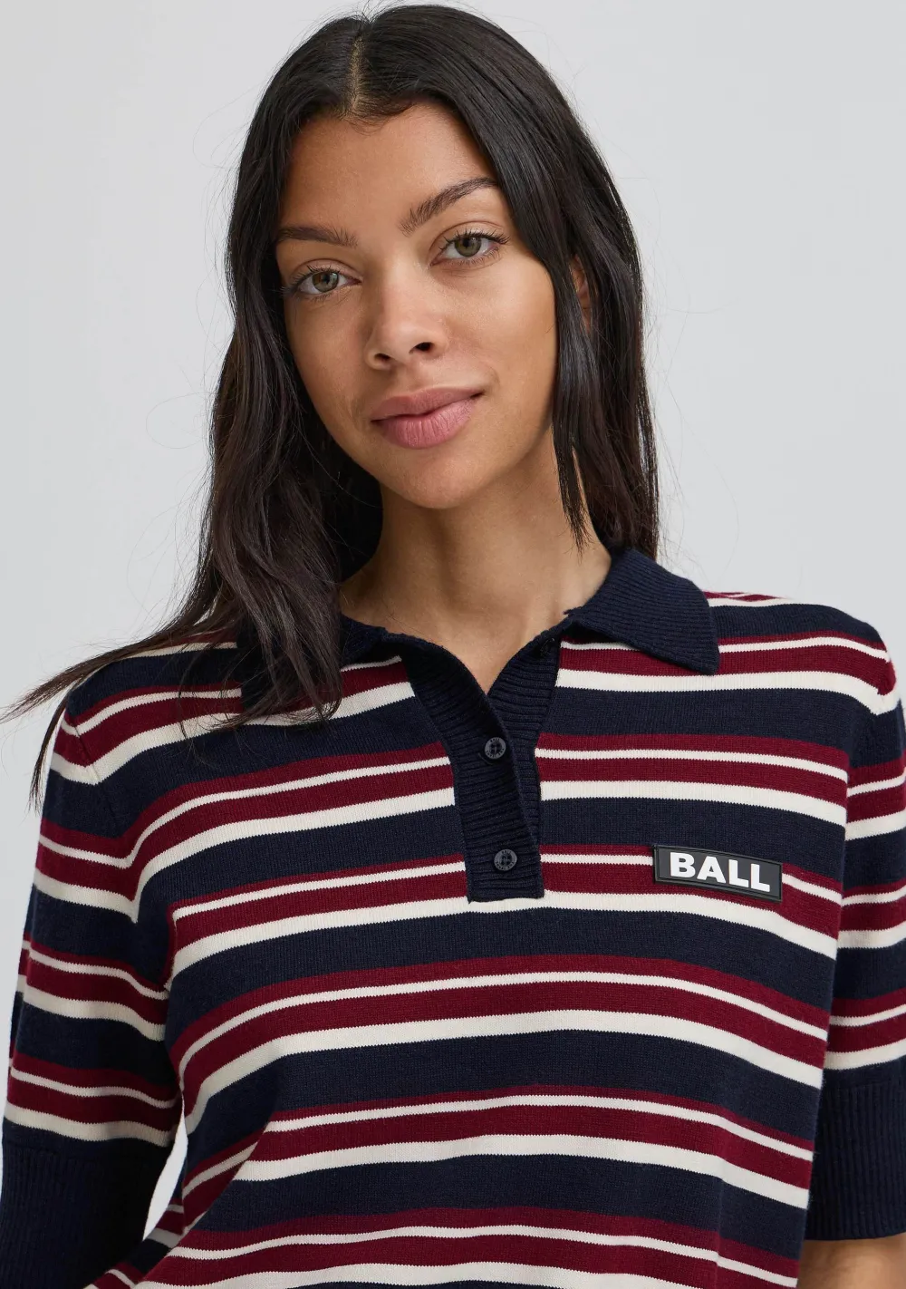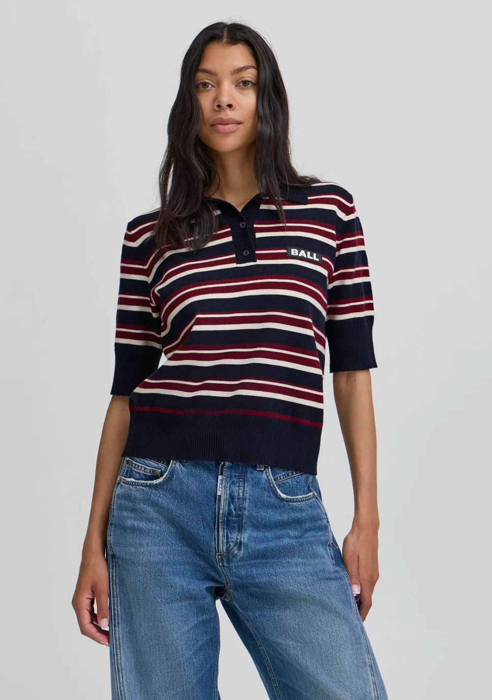 – Het model is 1.76m lang en draagt maat XS