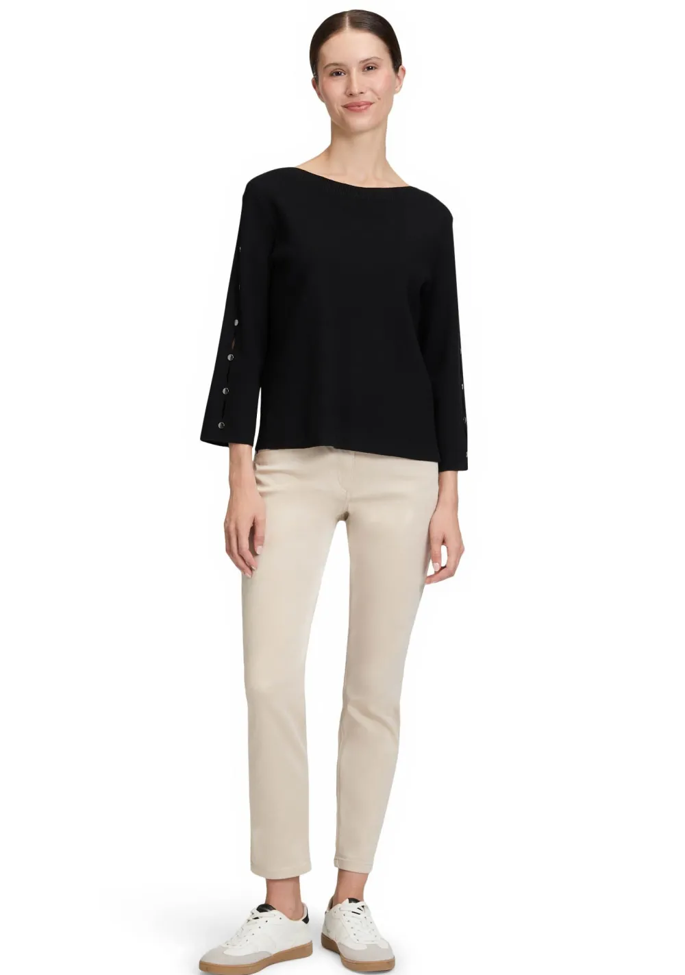 – Het model is 1.76m lang en draagt maat 38