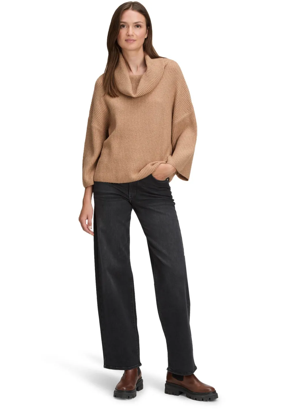 – Het model is 1.76m lang en draagt maat 36