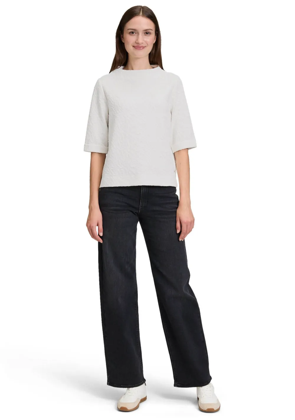 – Het model is 1.76m lang en draagt maat 36