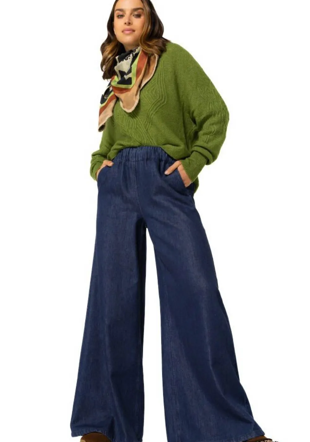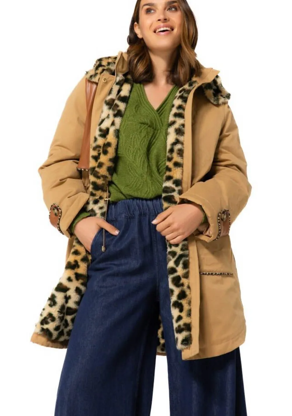 – Het model is 1.76m lang en draagt maat 36